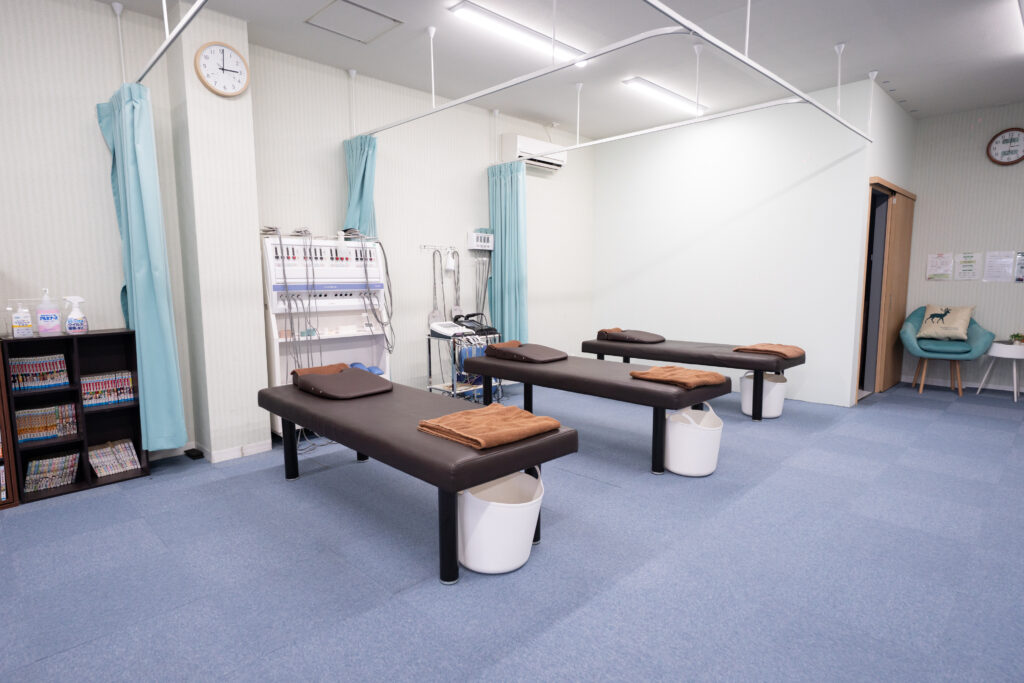 対して当院は人の手による手技施術がメインで、物理機器を補助的に用いたケアを行います。